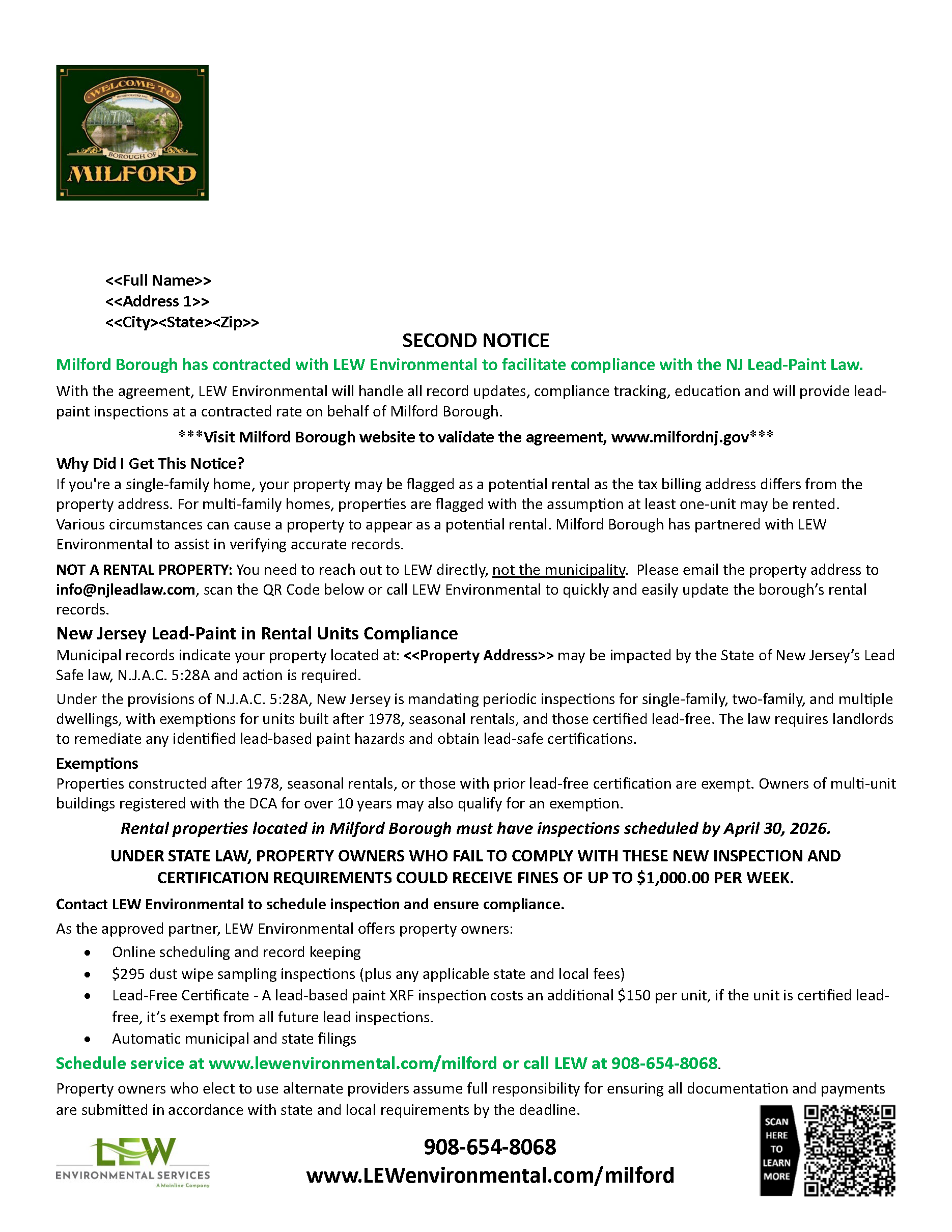 Milford 2nd Notice Services